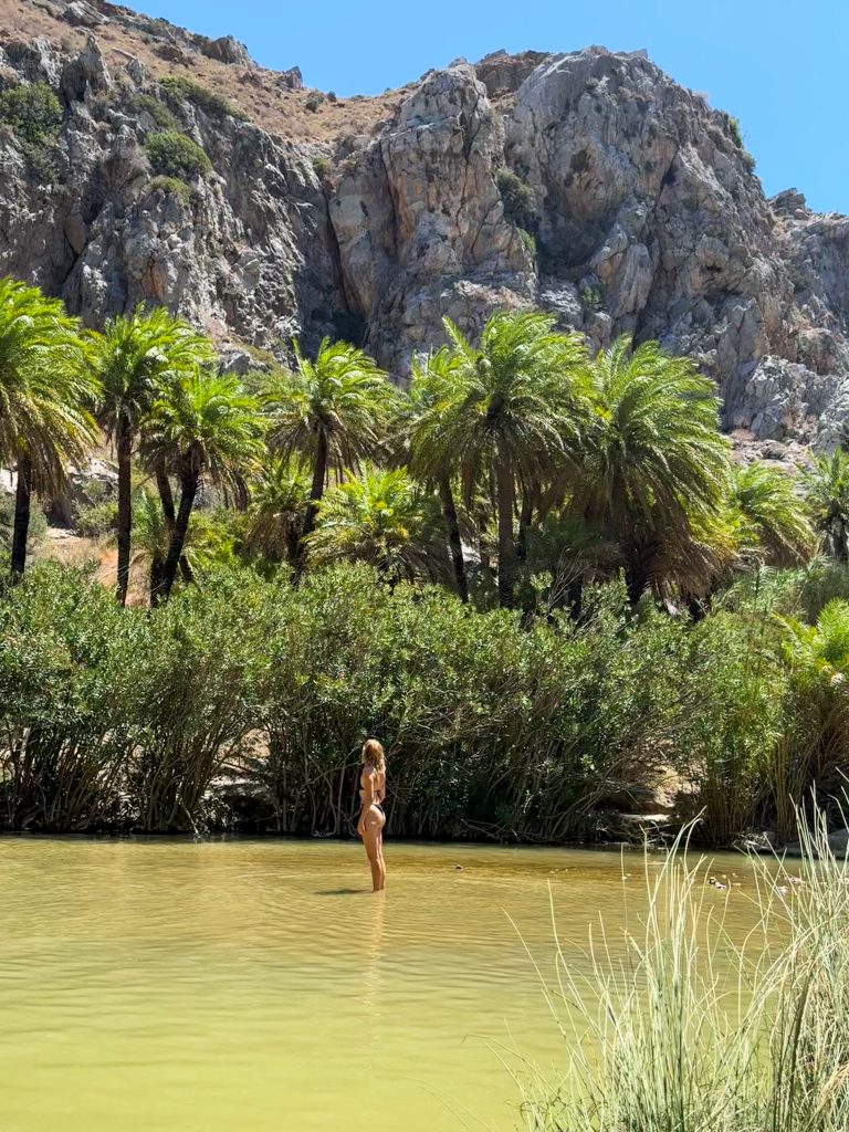Es ist wirklich ein atemberaubender Ort! Die Schlucht mündet hier direkt ins Meer und die Dattelpalmen wachsen hier auf natürliche Weise in einem Hain. So viel Grün fand ich eine willkommene Abwechslung im sonst so staubtrockenen August auf Kreta.